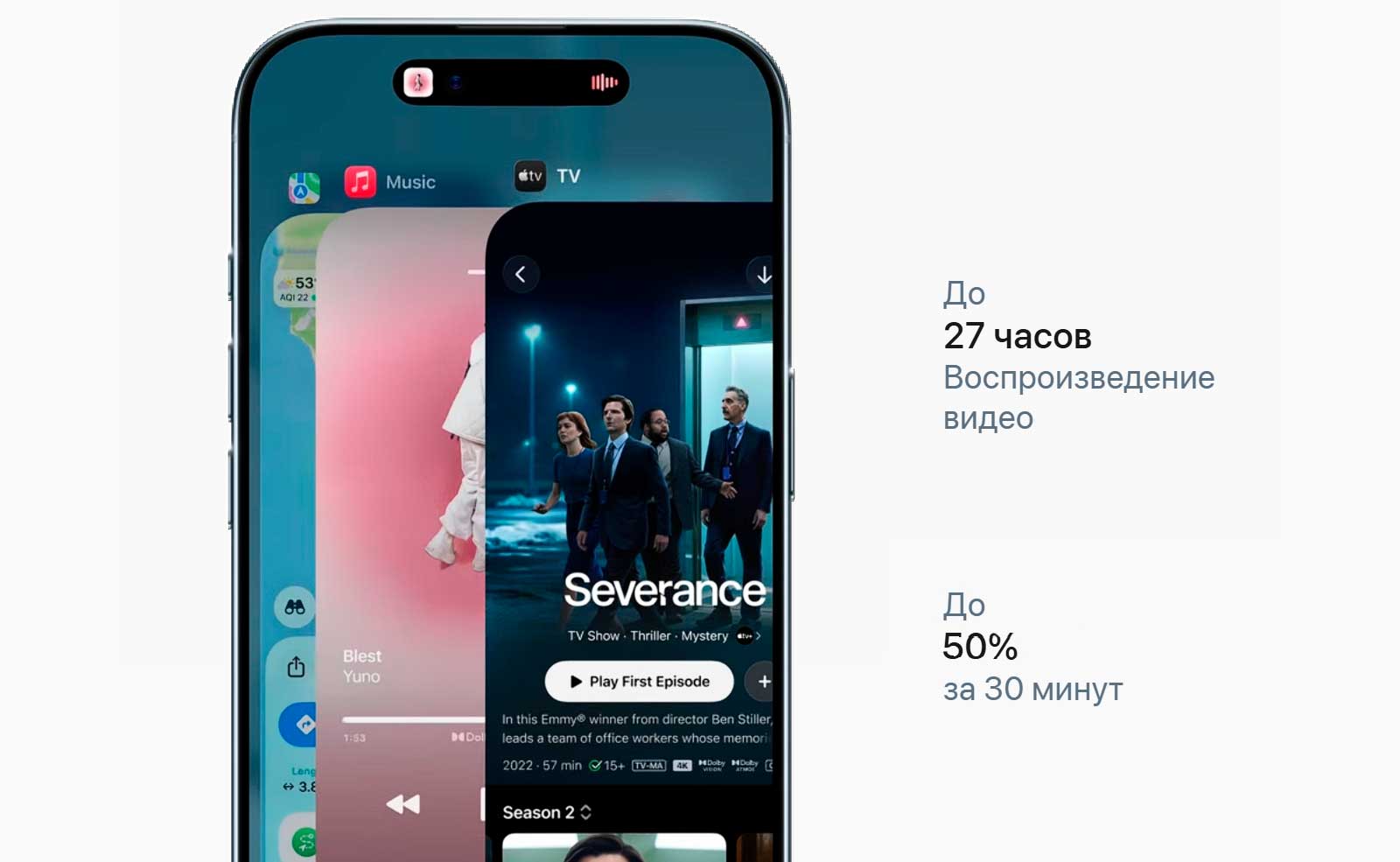 Внутренний дизайн iPhone Air был полностью переосмыслен с целью максимального увеличения места в аккумуляторе. В общем, вы будете наслаждаться замечательным временем автономной работы в течение всего дня.