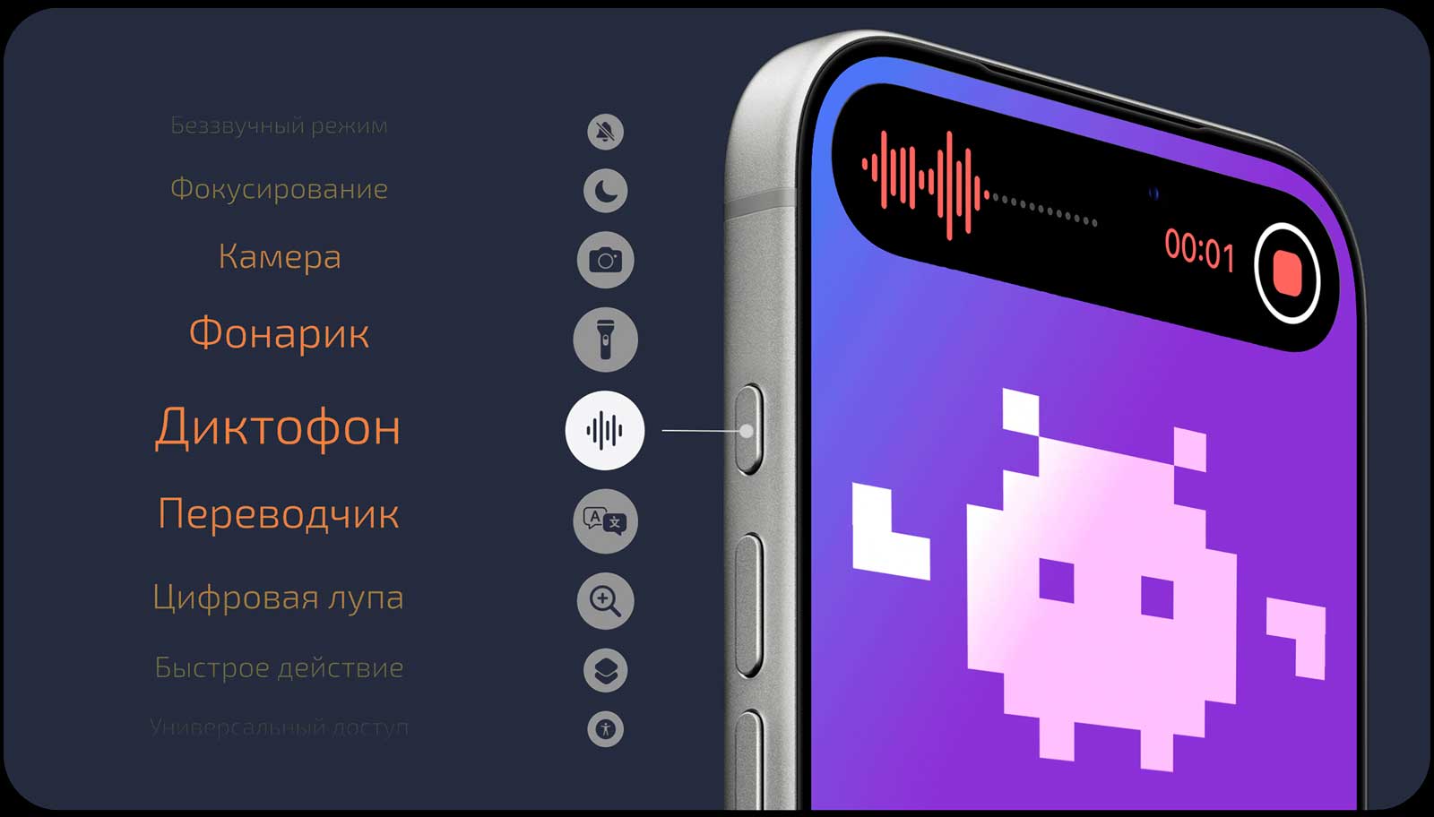 Видеографы тоже будут рады. К поддержке LOG, ProRes, DolbyVision и возможности записывать видео в 4K с частотой до 120 кадров в секунду добавился и новый, ещё более профессиональный формат: ProRes RAW. Кроме того, несколько смартфонов можно синхронизировать во время записи и создавать потрясающие эффекты. Сложно? Может быть, но представьте, во сколько обойдётся такой сетап, если вместо айфонов будут камеры… Ну а для менее эпических проектов добавили ещё одну полезную, но приятную фишку для влогеров: записывать видео теперь можно одновременно на фронтальную и основную камеру. Кстати, на кнопку Action Button можно повесить альтернативное приложение для съёмки.