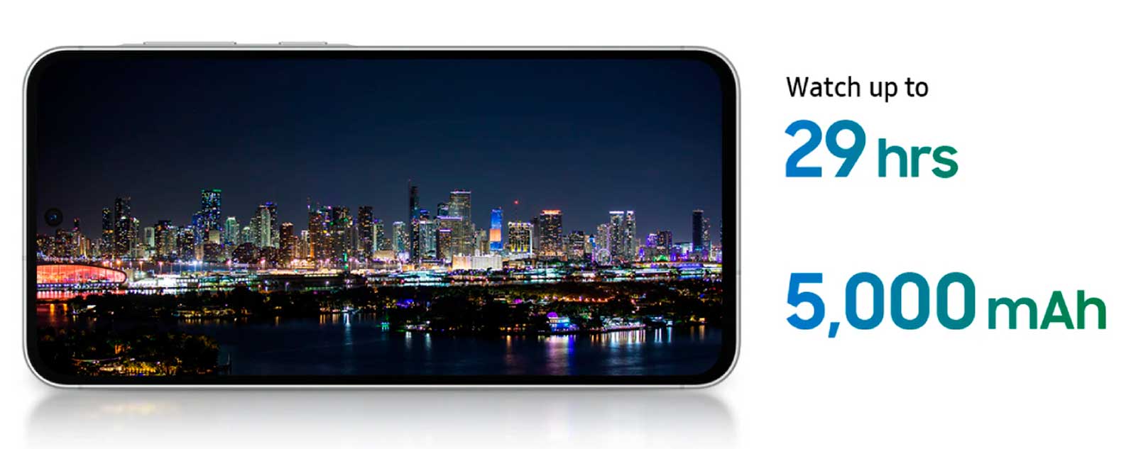 Благодаря мощной батарее на 5 000 мАч (типичное значение), обеспечивающей до 29 часов непрерывного воспроизведения видео, можно долго не беспокоиться о заряде своего Galaxy A56.