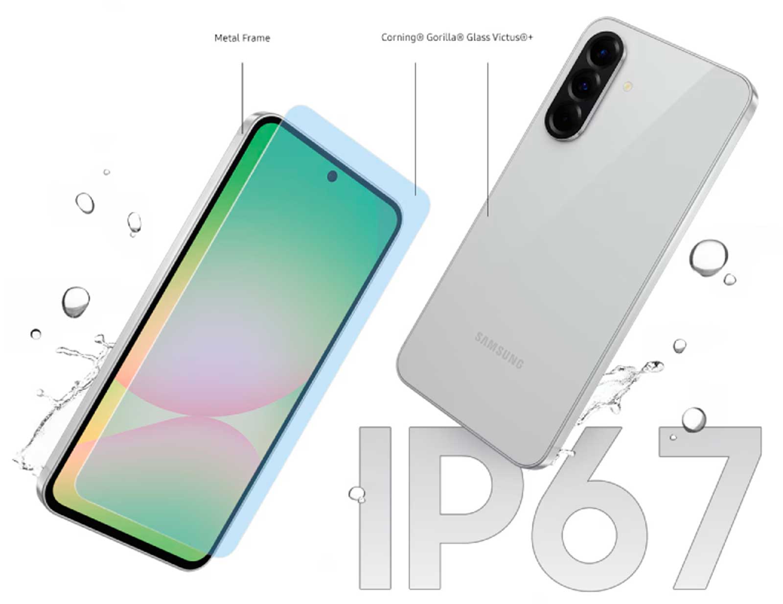 Крепкий металлический корпус и стекло Corning Gorilla Glass Victus надежно защищают стильный дизайн Galaxy A56. Кроме того, класс защиты IP67 обеспечивает устойчивость новых смартфонов с Galaxy A к пыли и брызгам.
