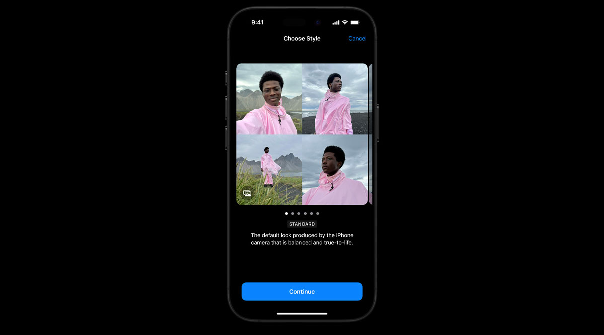 Мы создали новые стили, которые позволяют вам точно подобрать желаемый образ с более совершенной передачей оттенков кожи и применить его ко всем вашим фотографиям. Благодаря возможностям A18 Pro вы можете увидеть примененный стиль в режиме предварительного просмотра — как при профессиональной цветокоррекции в реальном времени.