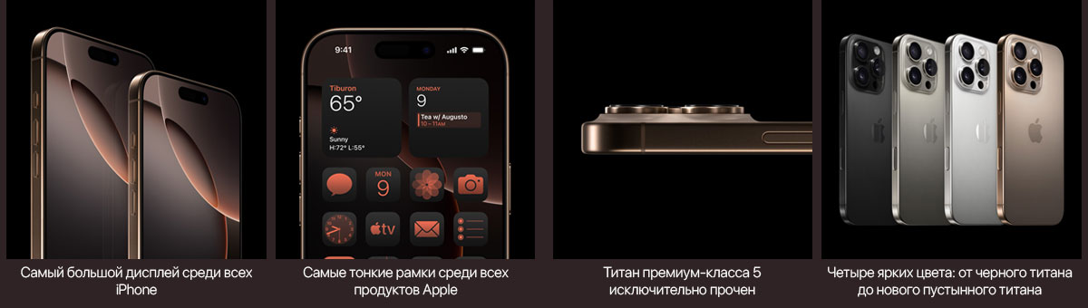 Phone 16 Pro Max имеет титановый корпус Grade 5 с новой, изысканной микроструйной отделкой. Титан имеет одно из самых высоких соотношений прочности к весу среди всех металлов, что делает эти модели невероятно прочными и впечатляюще легкими . iPhone 16 Pro Max представлен в четырех потрясающих цветах, включая новый Desert Titanium. Улучшения внутреннего дизайна — включая полностью переработанную алюминиевую тепловую подструктуру и оптимизацию заднего стекла, которая дополнительно рассеивает тепло — обеспечивают до 20 процентов более высокую стабильную производительность по сравнению с iPhone 15 Pro Max. Так что вы можете заниматься всем, что любите — например, интенсивными играми — дольше.