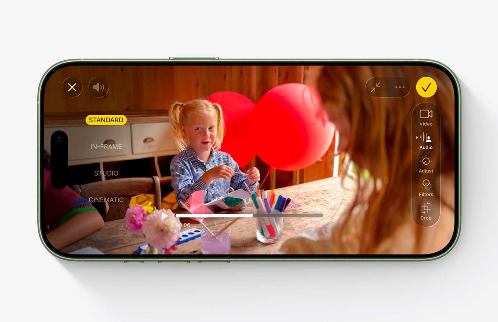 Записывайте видео в формате 4K со скоростью 60 кадров в секунду или включите кинематографический режим для получения результатов театрального качества. А Audio Mix позволяет настроить звучание голосов в ваших видео.