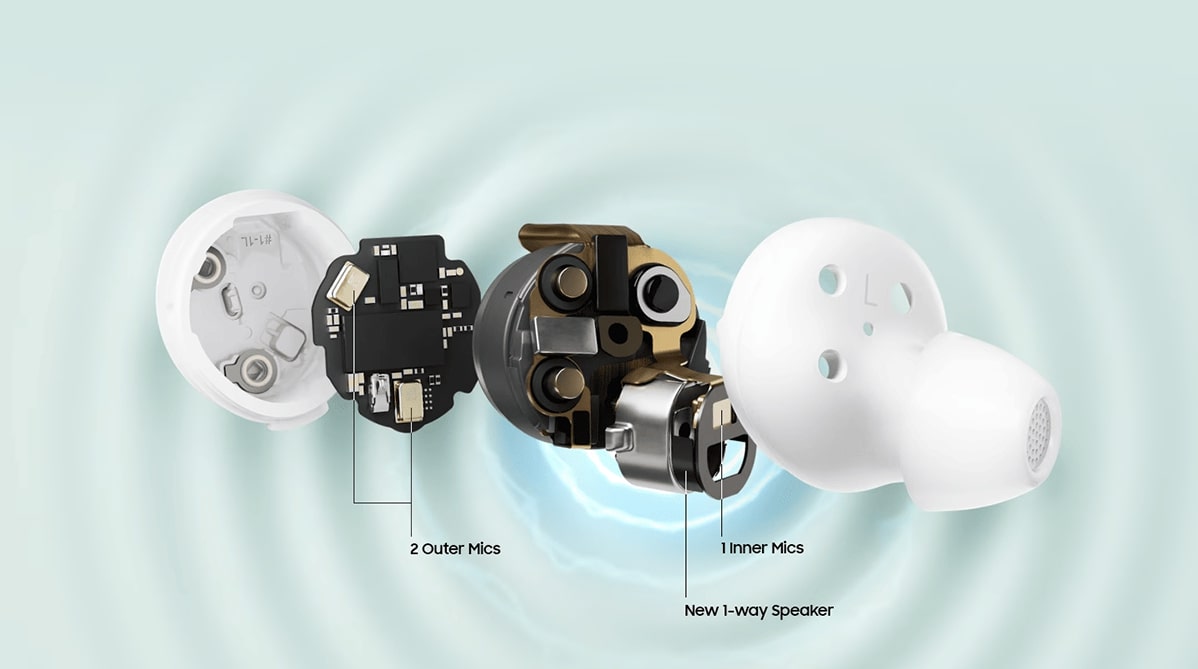 Наслаждайтесь насыщенным звучанием Galaxy Buds FE с глубокими, мощными басами нового 1-полосного динамика, независимо от того, что вы слушаете.