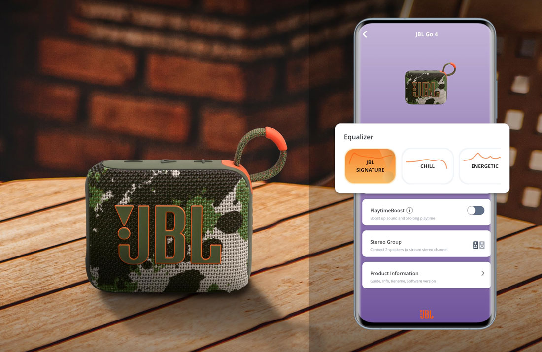 Используйте приложение JBL Portable для получения обновлений, поддержки продукта и разблокировки функций — все это прямо с телефона. Настройте звук с помощью нескольких предустановленных эквалайзеров. Или воспользуйтесь полностью настраиваемым эквалайзером для регулировки высоких, средних и низких частот, чтобы ваша музыка звучала именно так, как вам нужно.