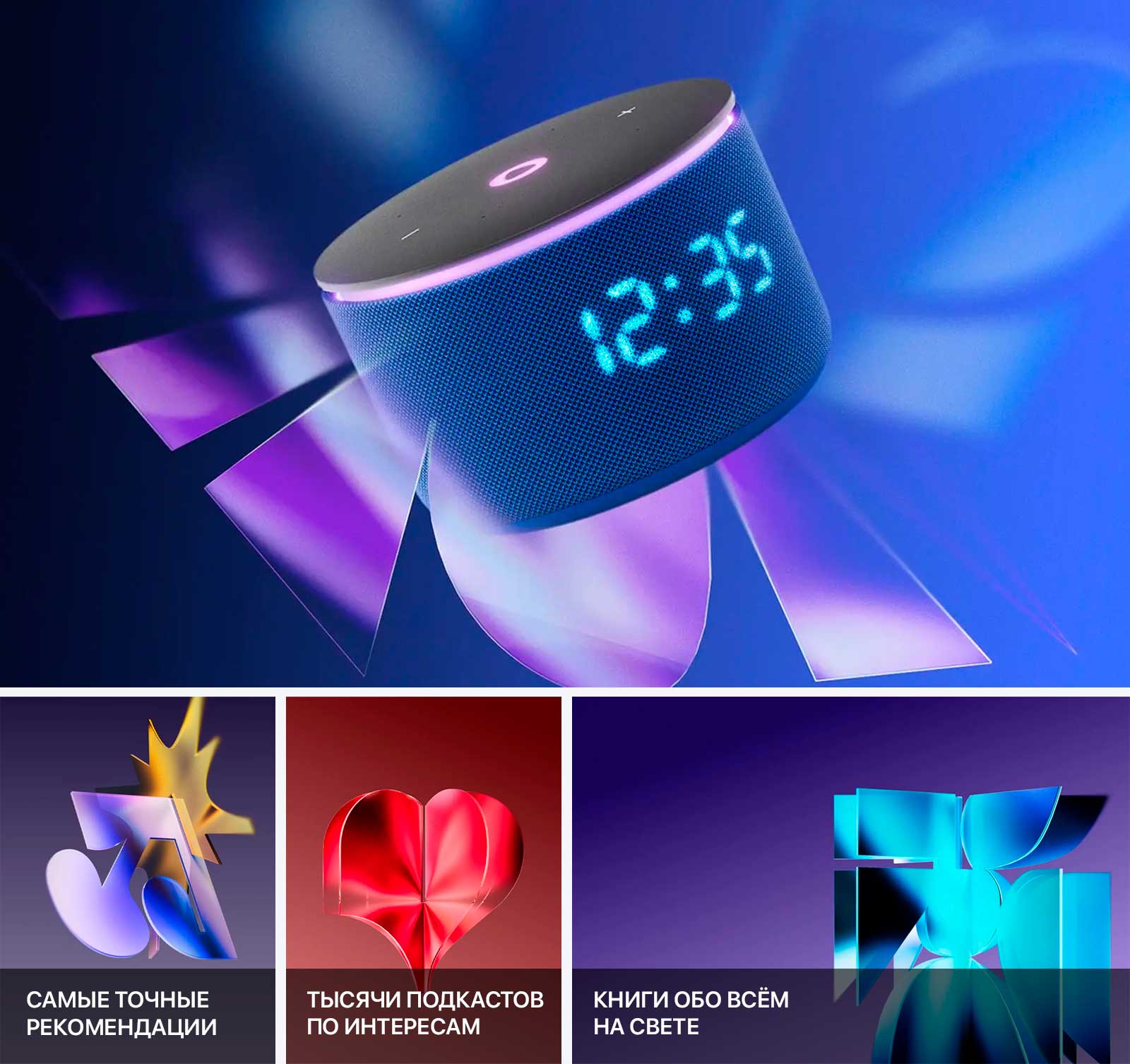 К привычному LED-дисплею Станции Мини 3 Про добавилась анимированная функциональная LED-подсветка, а вместе с ней — новый уровень взаимодействия с умной колонкой. Свет и цвет сопровождают ваше общение с Алисой и меняются в такт музыке.