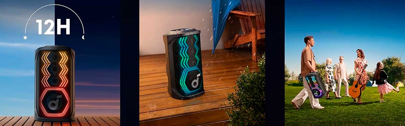 Почувствуй, как мощный звук наполняет каждый уголок, а динамическая подсветка оживляет танцпол. soundcore Rove 3S — твой идеальный старт для вечеринки.