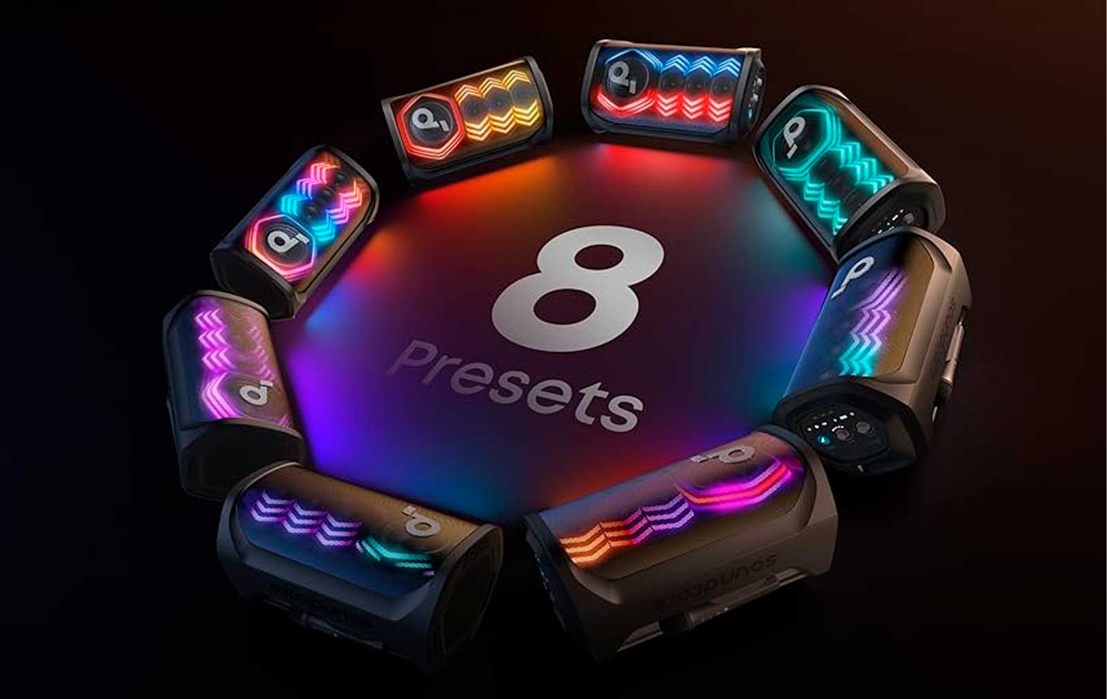 Свет, синхронизированный с музыкой, пульсирует в такт каждому удару. Выбирайте из 8 предустановок и настраивайте цвета, чтобы создать атмосферу вечеринки, которая сияет так же ярко, как и ваш плейлист.