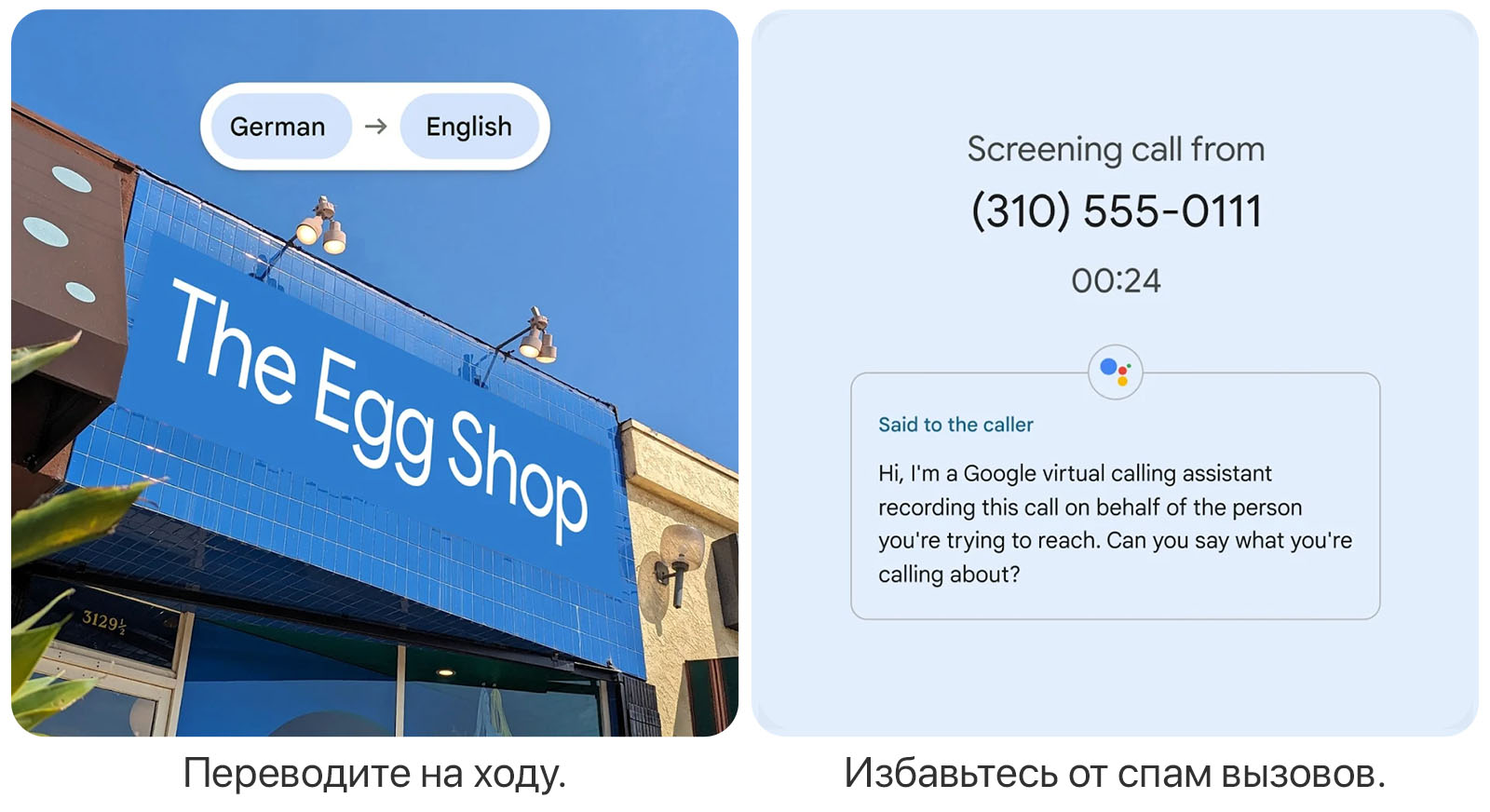 С помощью Live Translate вы можете переводить разговоры лицом к лицу на 49 языках, расшифровывать сообщения в режиме реального времени и переводить знаки. С помощью экрана вызовов Google Assistant теперь может обнаруживать и отфильтровывать еще больше нежелательных звонков. При других звонках он может сообщить вам, кто звонит и почему, прежде чем вы поднимете трубку.
