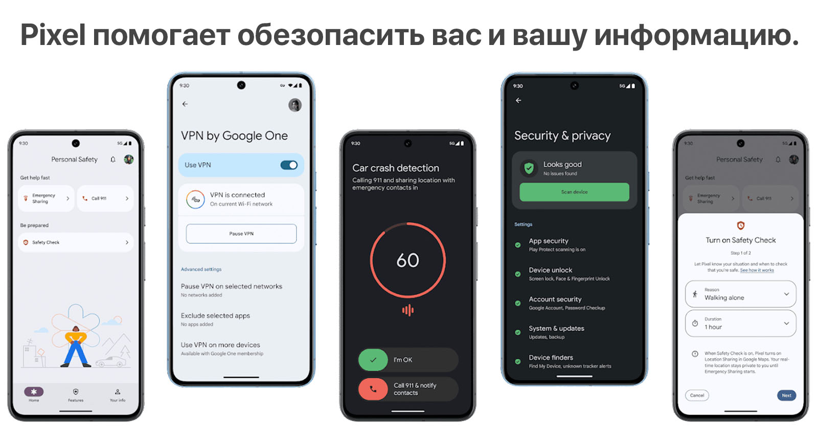 Pixel может определить, попали ли вы в серьезную автомобильную аварию, вызвать экстренные службы и сообщить о своем местоположении, если вы не можете этого сделать.